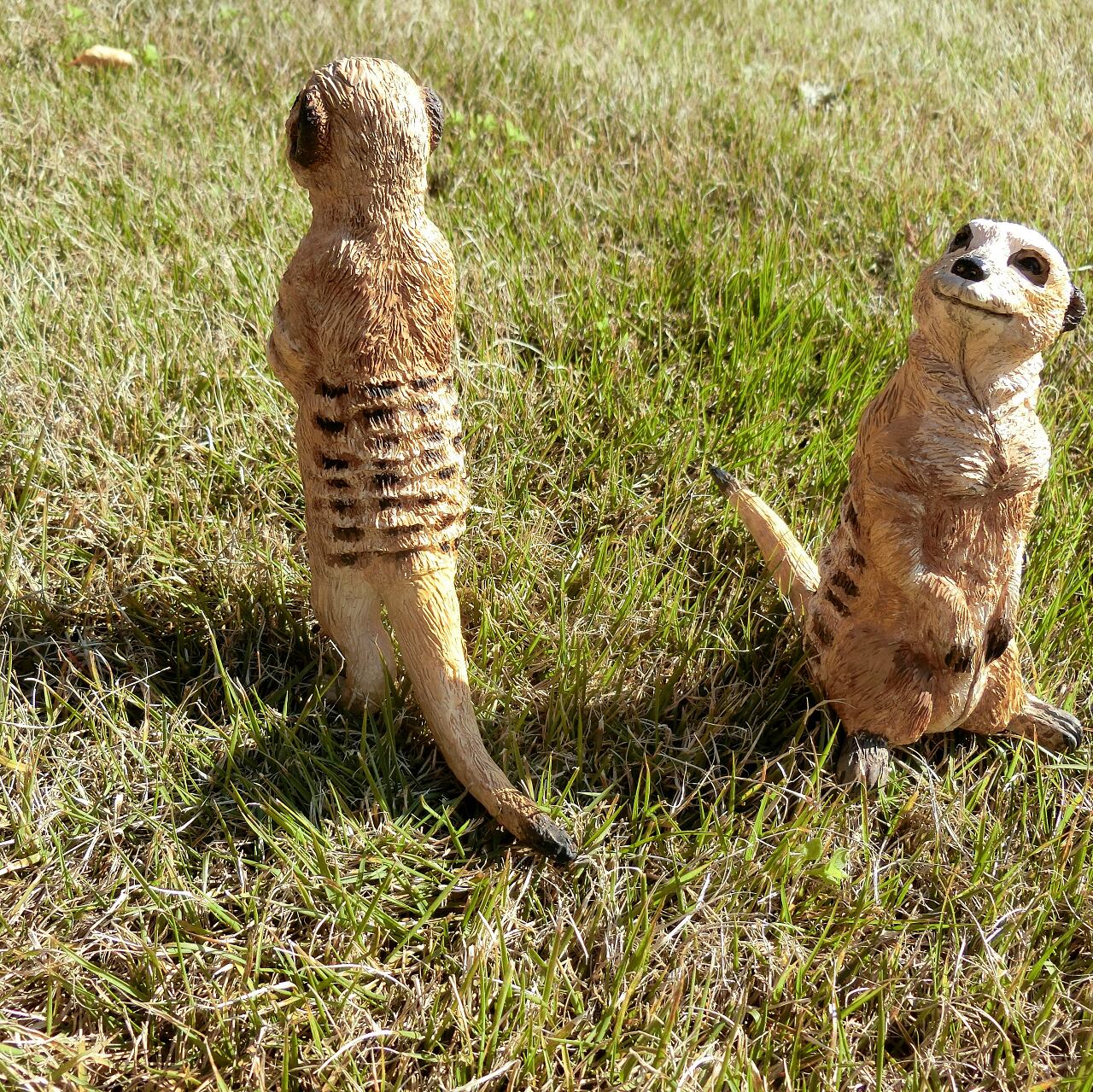 すっくと立ちあがって辺りを見つめているようなミーアキャットのフィギュアです。