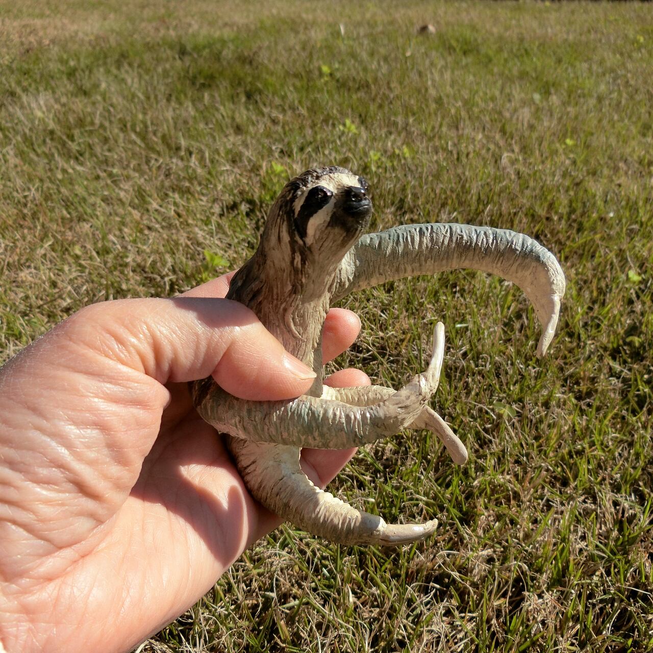どこかにぶら下がることができるミユビナマケモノのフィギュアです。