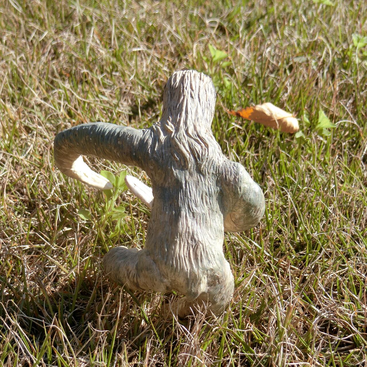 この個体は、白っぽい毛色ですが、背中や腕に苔が生えていて、緑色に見えるところがあります。