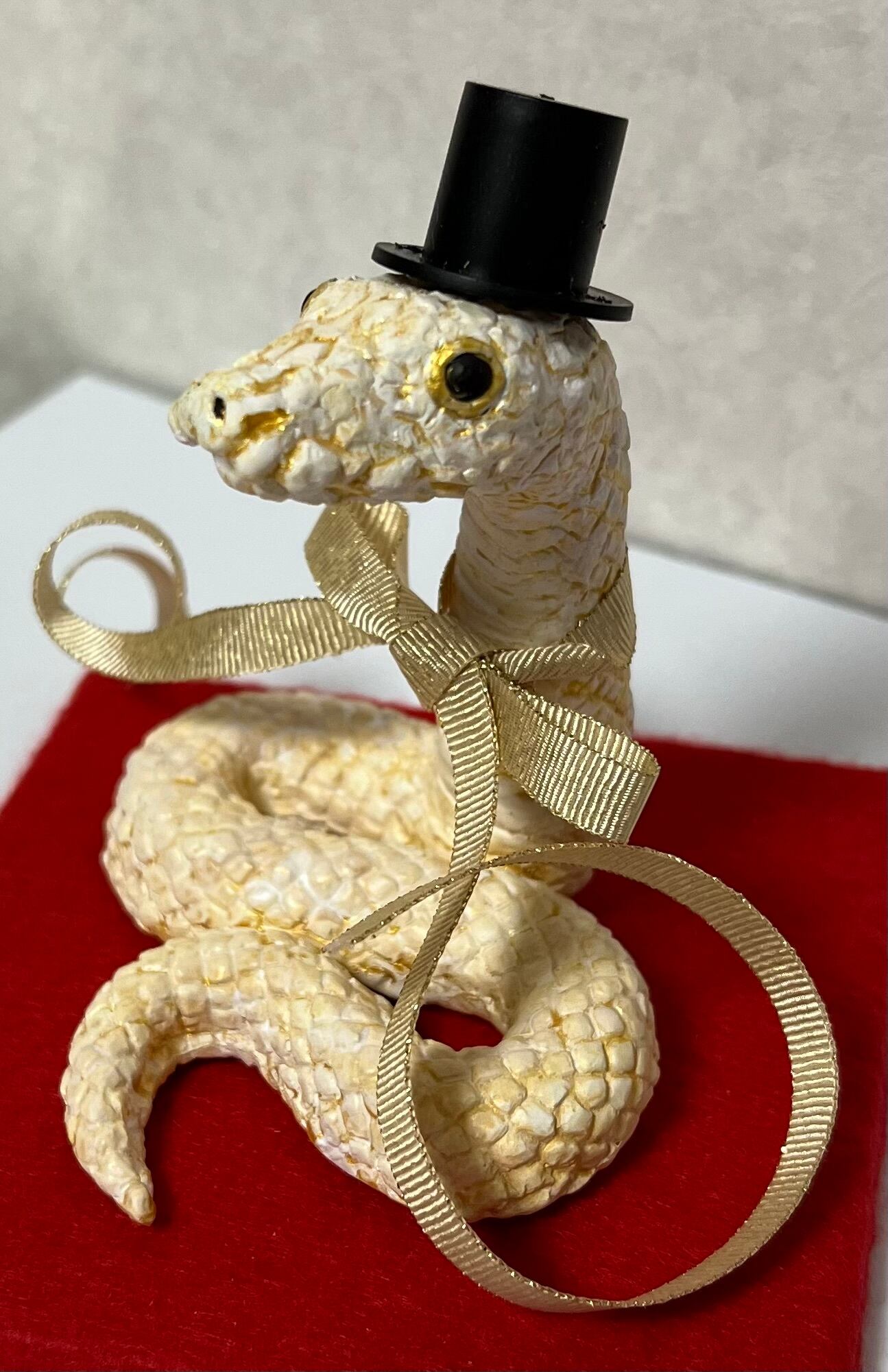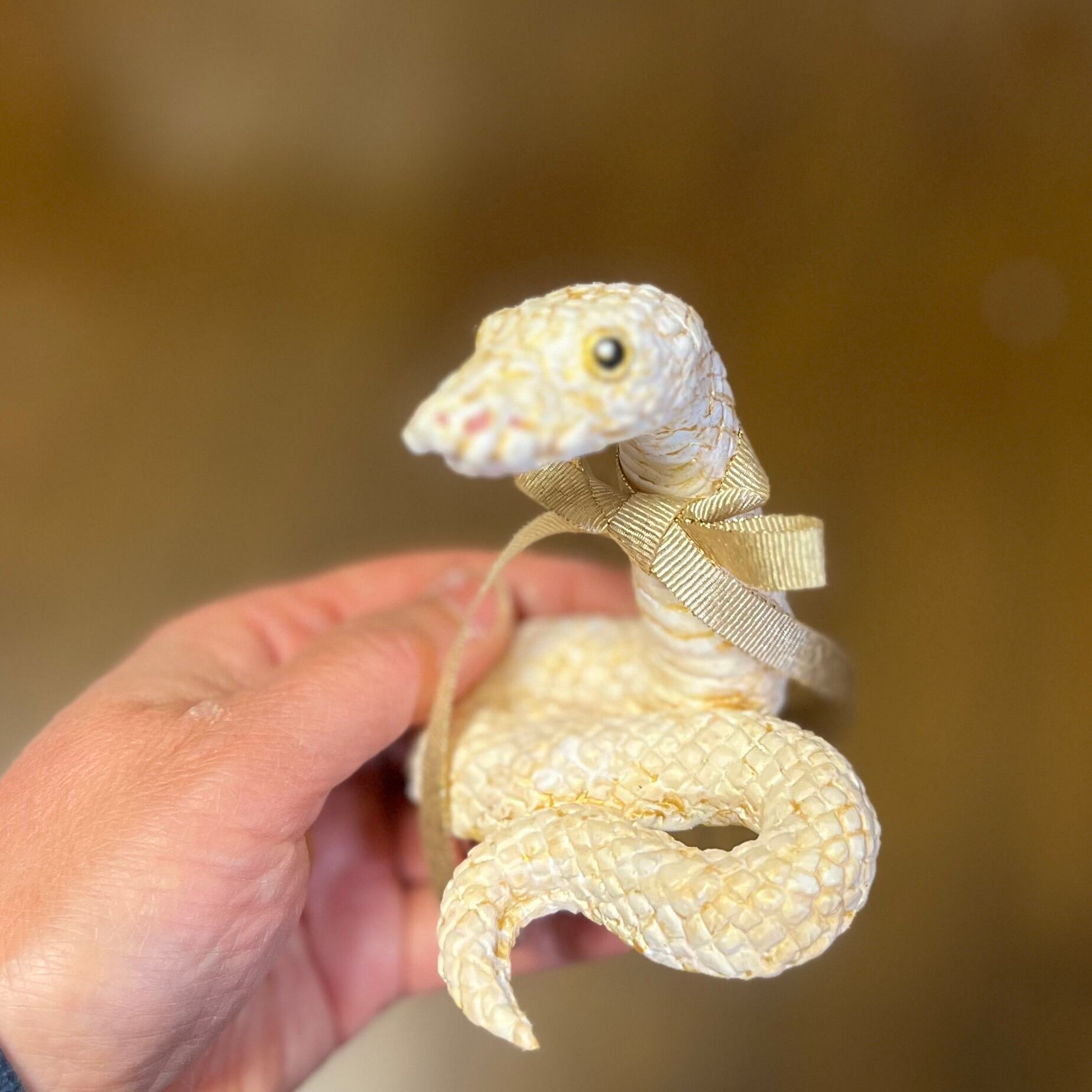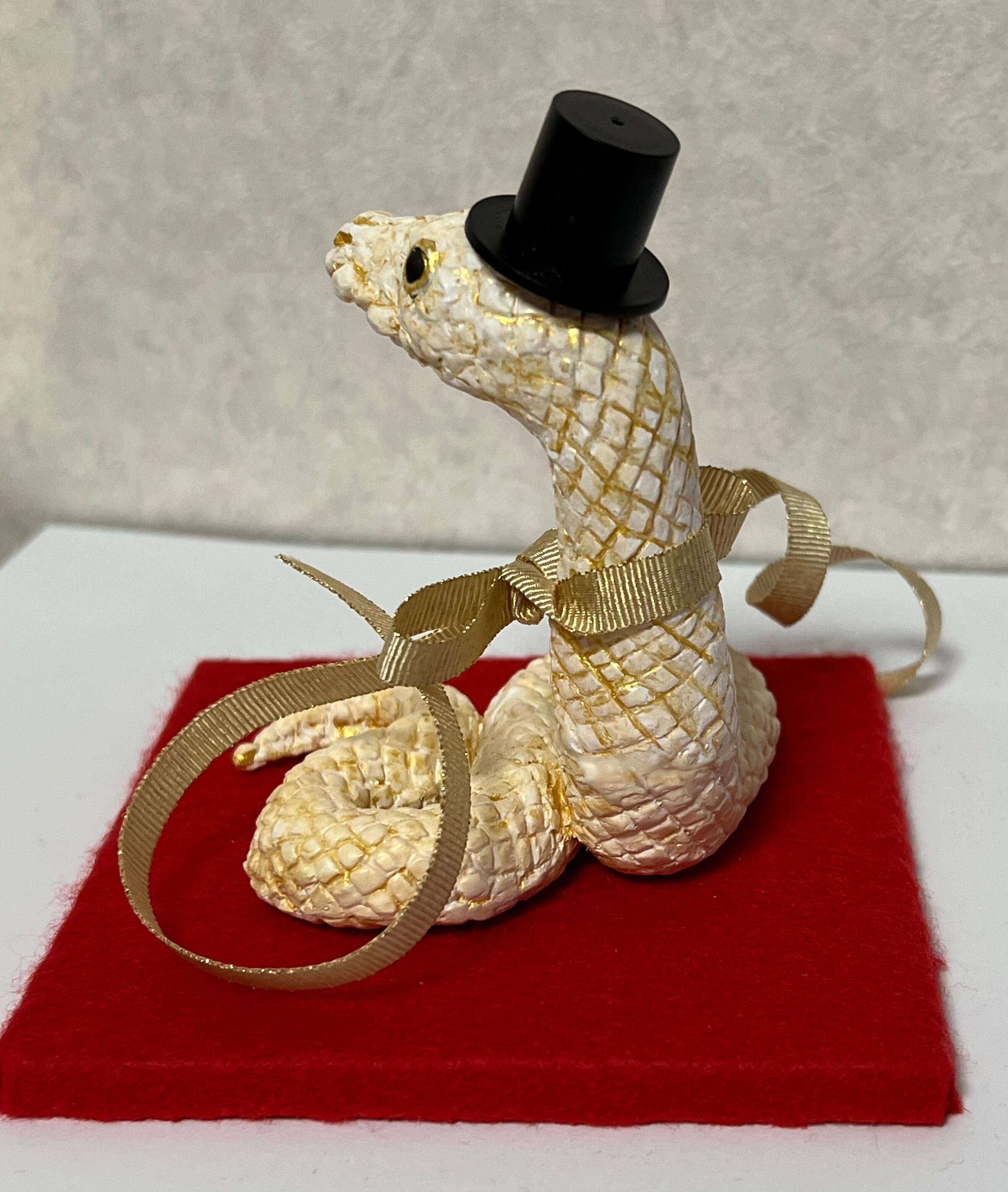 白と金色の縁起の良い色の巳年干支置物ができました。
